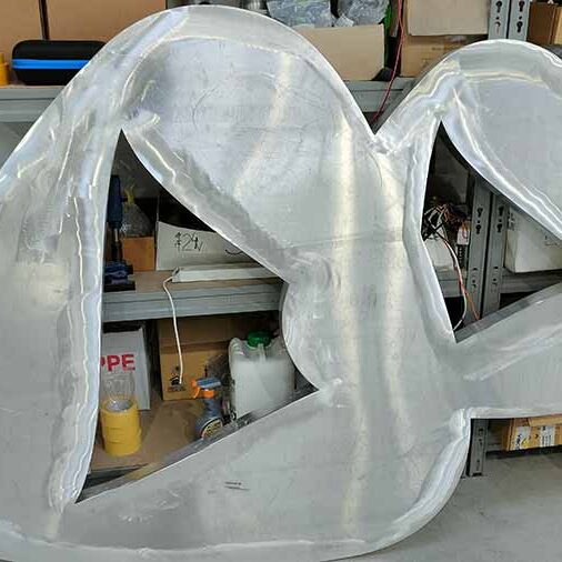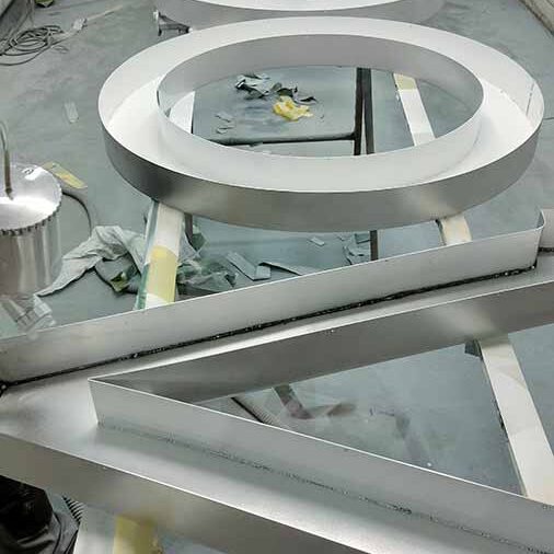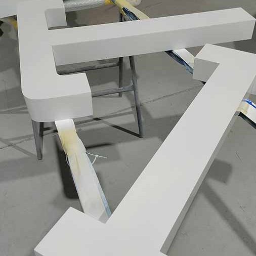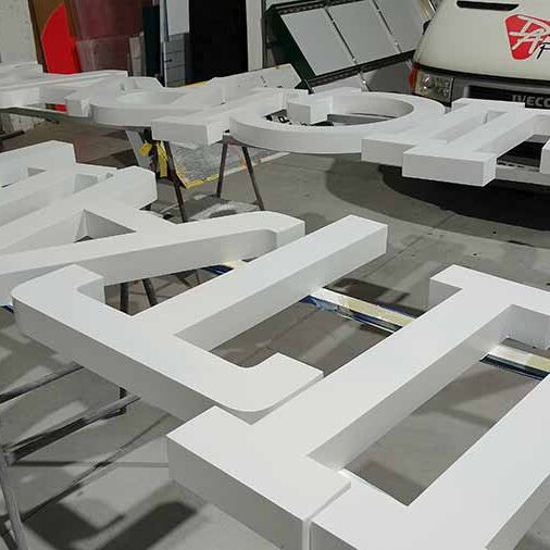 Realizamos los rótulos con Letras corpóreas de grandes dimensiones para la empresa Albia Servicios funerarios. Desde la fabricación hasta la compleja instalación de las mismas en las instalaciones del cliente.